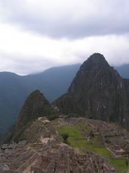 Lorsqu'on arrive par le chemin des incas, on apperçoit le site dominé par le pic du Huayna Picchu.Les secteurs religieux sont regroupés à l'ouest.Parmi eux,l'Intihuatana est un affleurement de roche vive sculptée, peut-être une huanca(ancêtre transformé en pierre).Juste en dessous se trouve le temple ausx 3 fenêtres,un des édifices les plus finement ouvragés du site avec le Torréon.A l'est sétendent des ateliers,des térrasses agricolesainsi que les habitations des artisans et des paysans.Le Machu Picchu n'était qu'une cité modeste d'environ 200 édifices qui n'abritait qu'environ mille personnes.